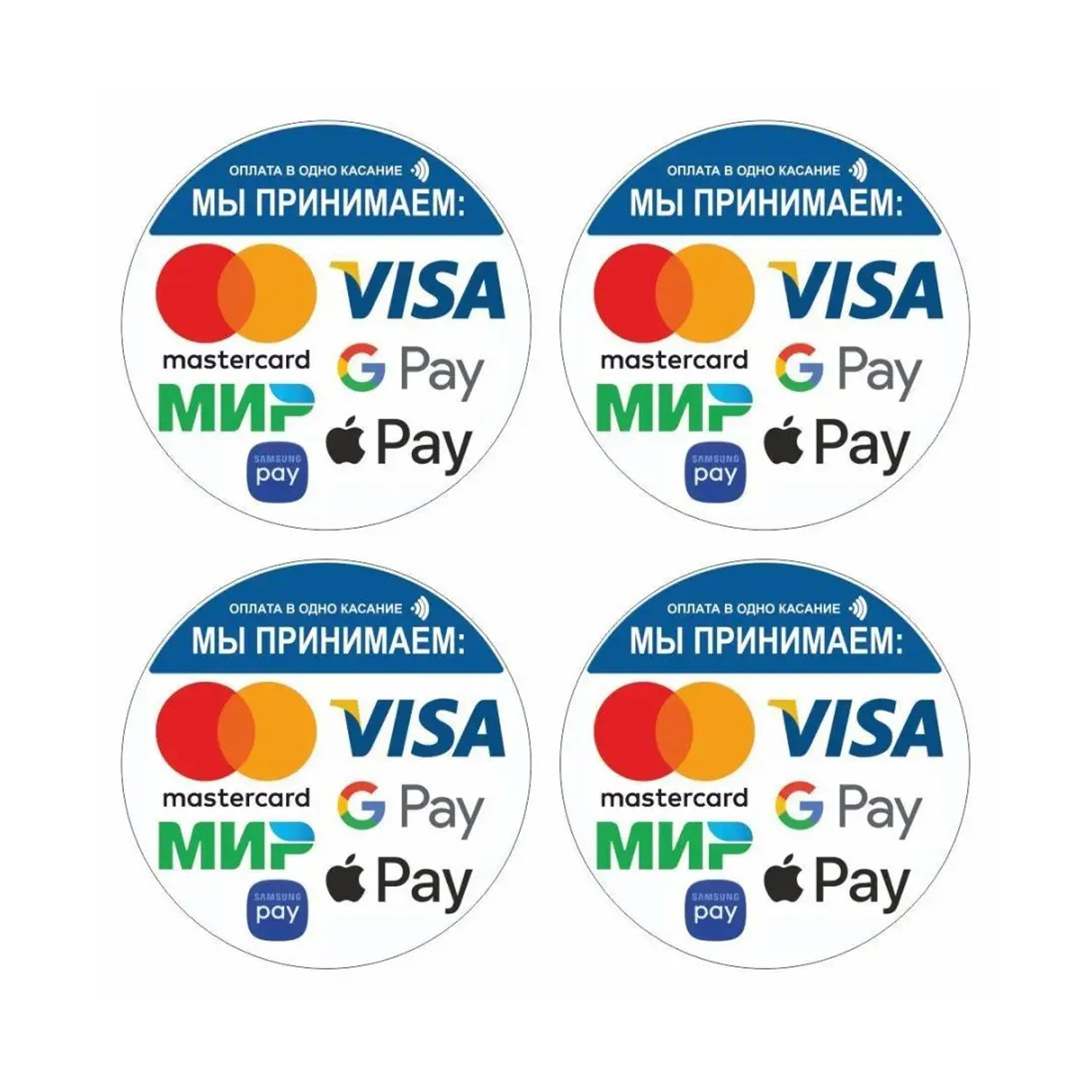 Наклейка круг 150х150 "Оплата в одно касание" 4шт 7181432