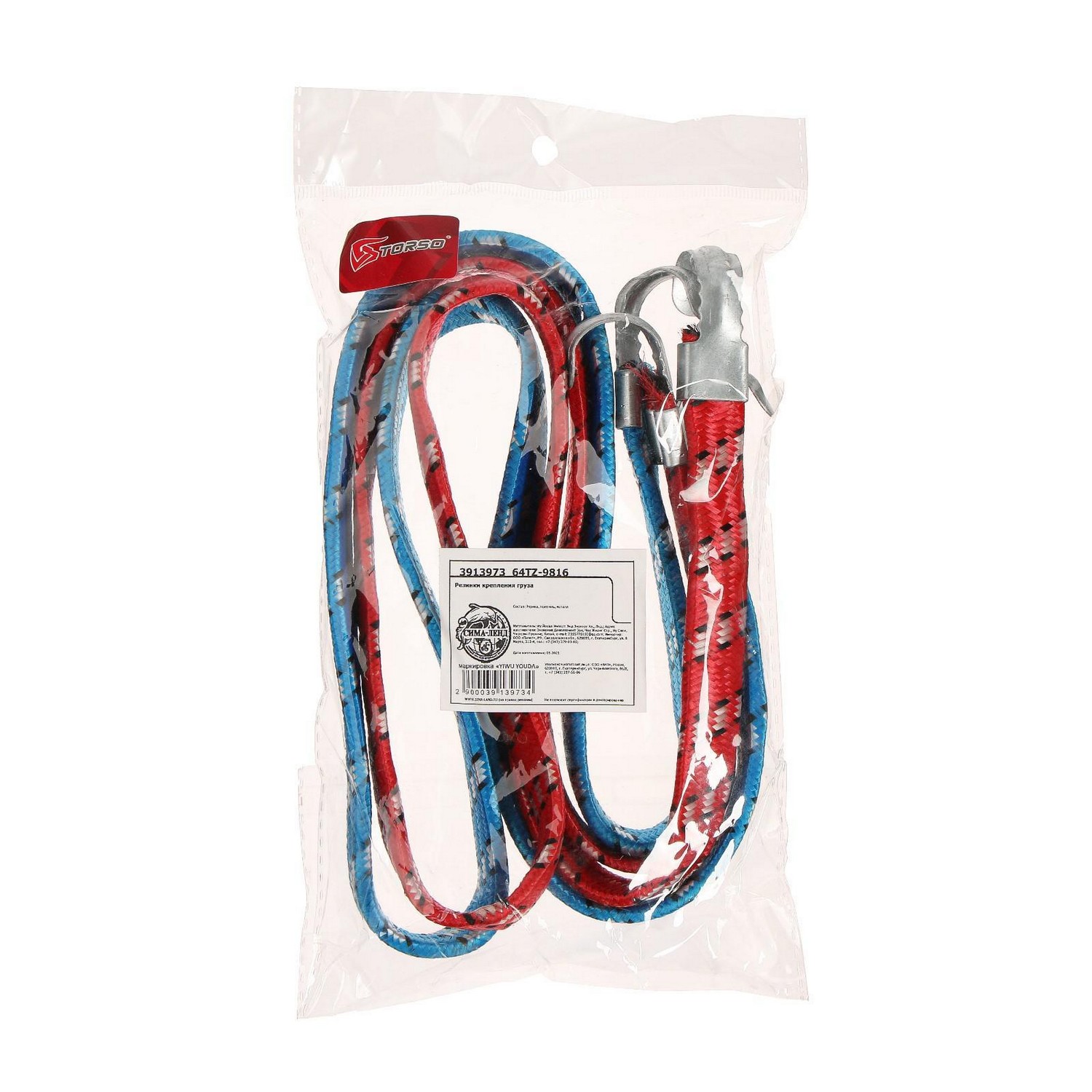 Резинка крепления TORSO 1.75х100 см, металлические крючки, микс, набор 2 шт   3913973