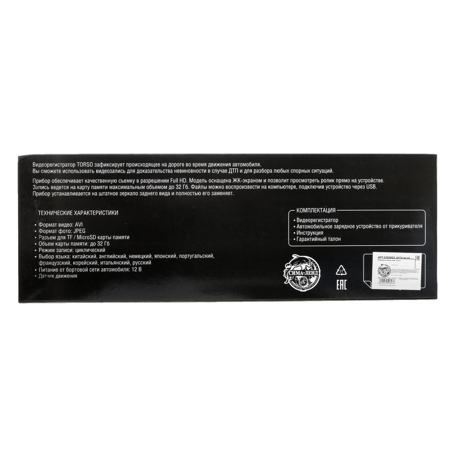 яяяВидеорегистратор TORSO, HD 1080P, размер 30×8.5 см, TFT 2.8, обзор 100°, золотистый 5250803