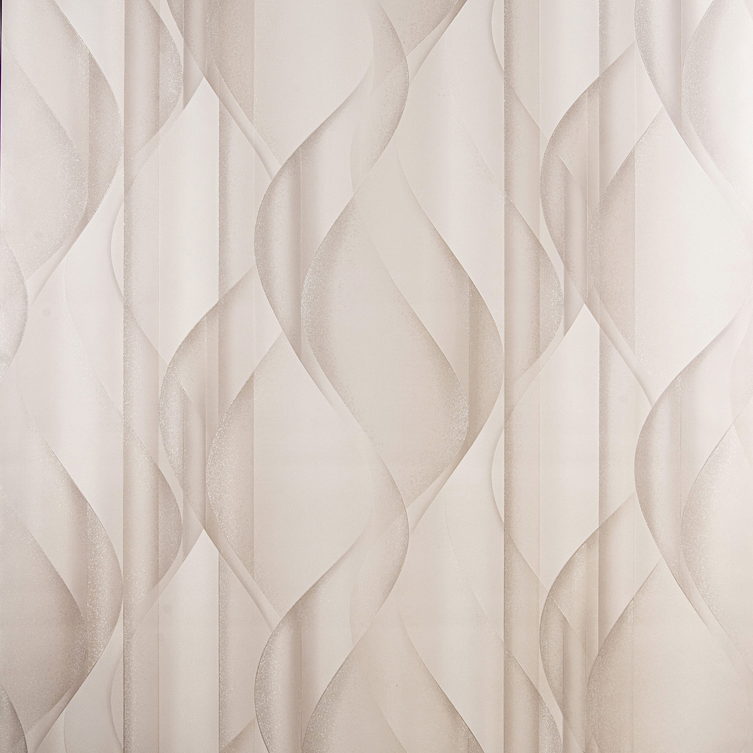 Фон коллекции имитирует текстуру необработанной штукатурки, а перламутровое напыление с неглубоким тиснением подчеркивает ее. Фон выполнен в спокойных тонах, он гармонично дополняет и усиливает впечатление от волнообразной абстракции мотива.