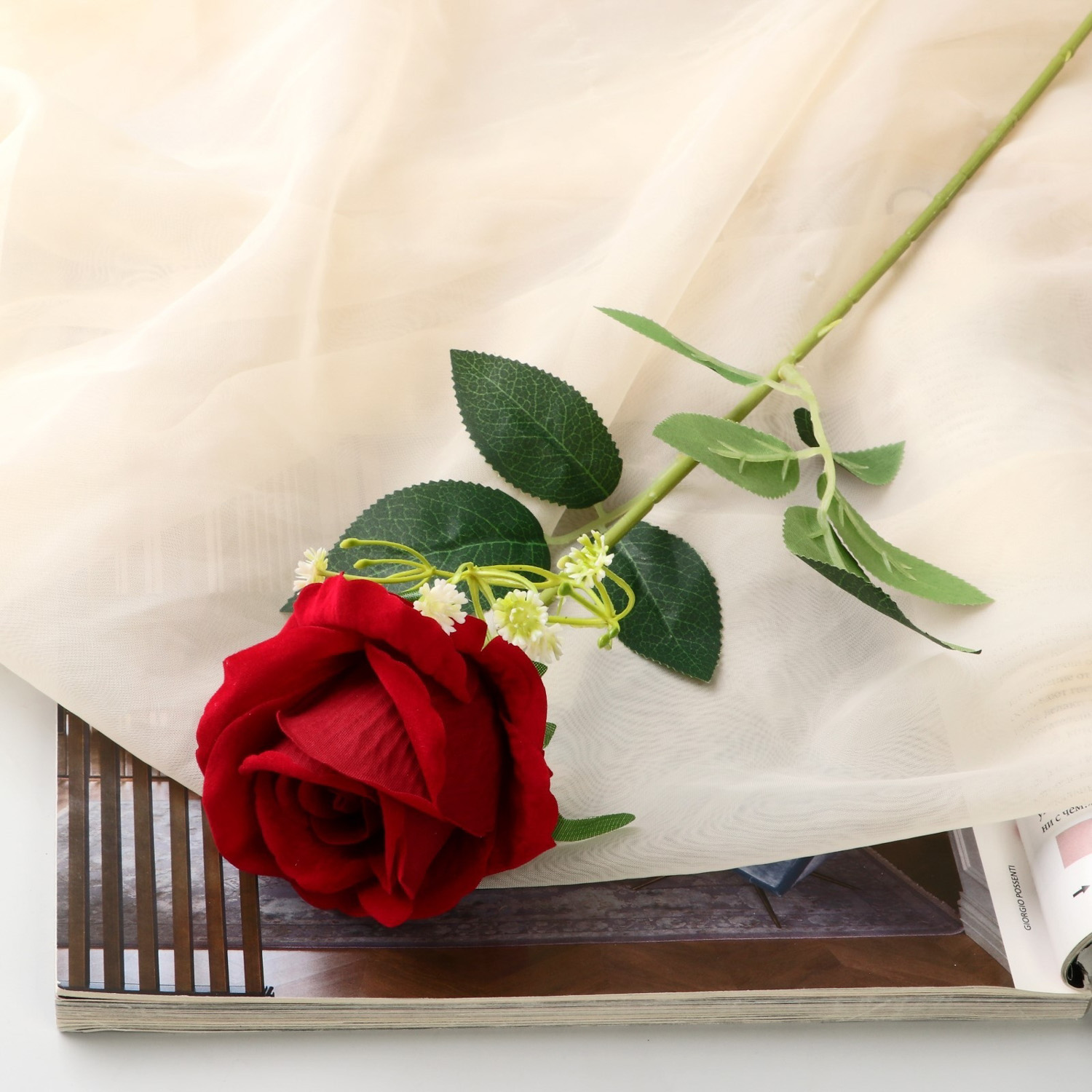 Цветы искусственные "Роза венесуэльская" 8х56 см, бордовый   9369549