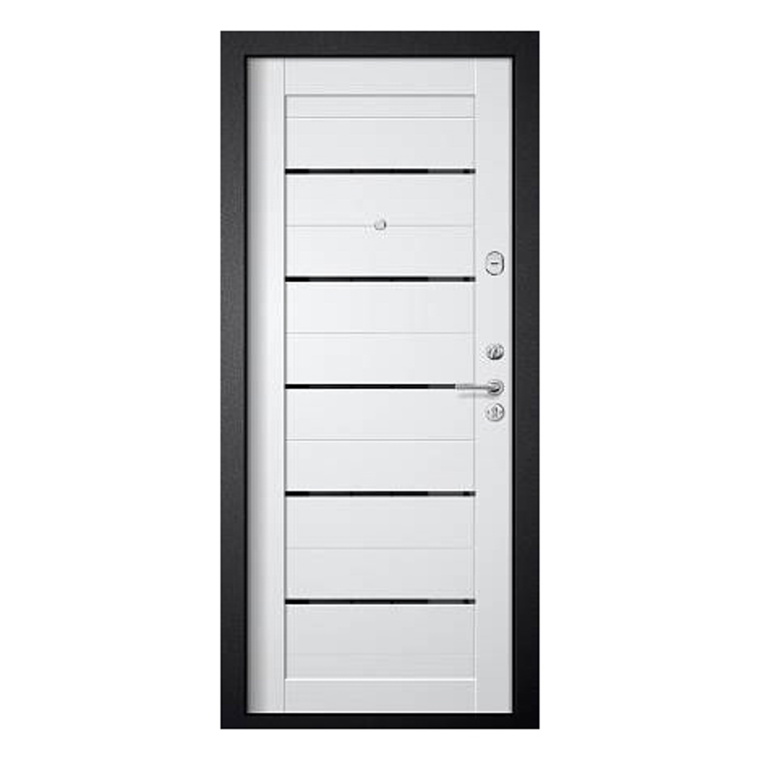 Дверное полотно, дверной короб, петли- 3 шт., противосъемные ригели - 3 шт., наличник, уплотнители -