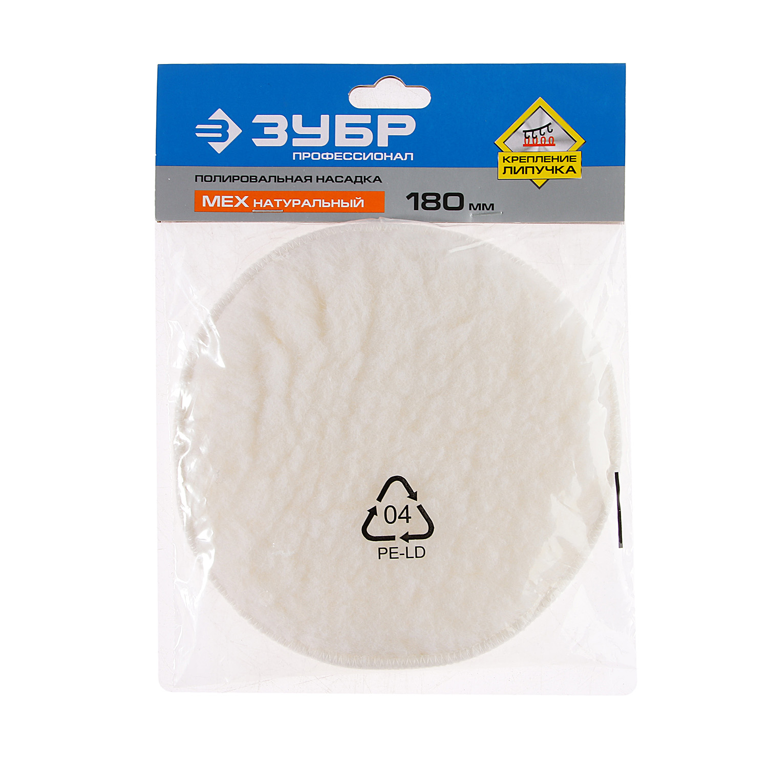 Насадка полировальная 180мм на липучке мех натур. Эксперт арт.3596-180 ЗУБР *1/60