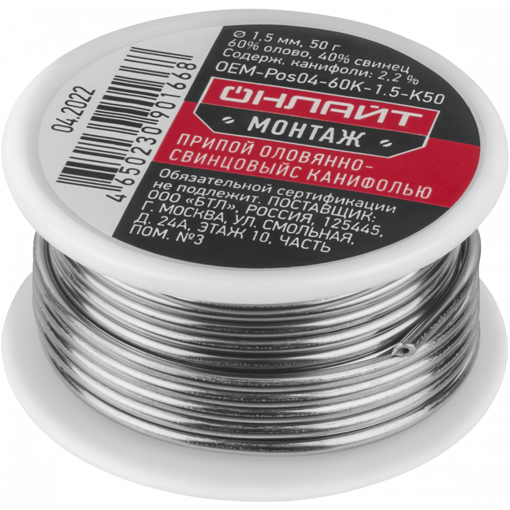 Припой с канифолью ПОС-60 катушка 1.5мм, 50г ОНЛАЙТ 90166 *1/300