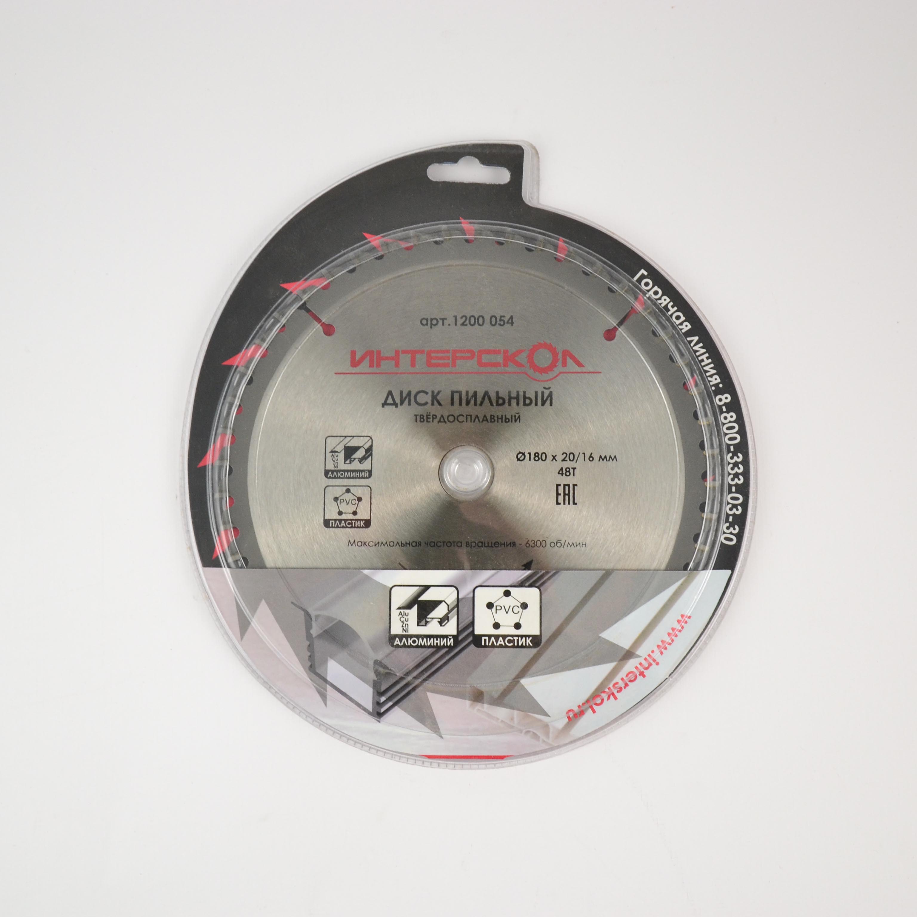 Диск д/циркул.пилы 180мм 20/16-48Тд/цвет.мет, пластика (Интерскол) *1/10
