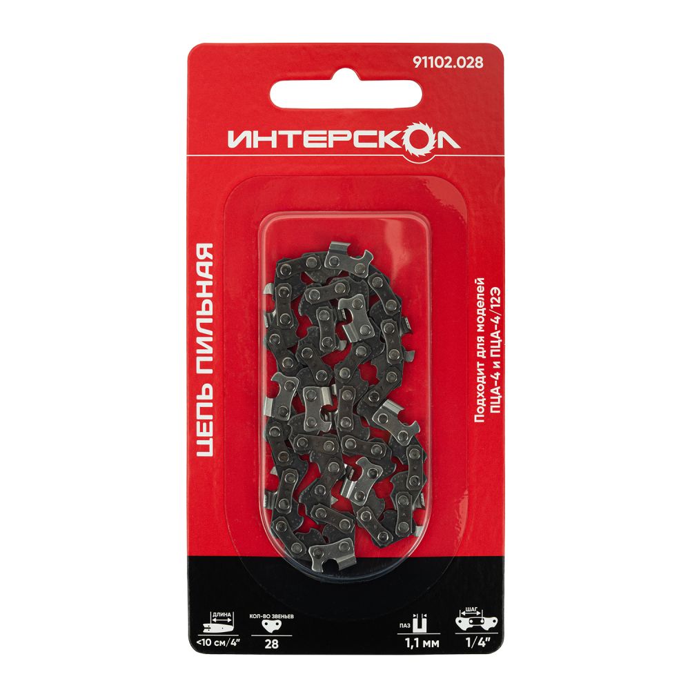 Цепь пильная шина10см 28звеньев шаг1/4" паз1.1мм Интерскол *1