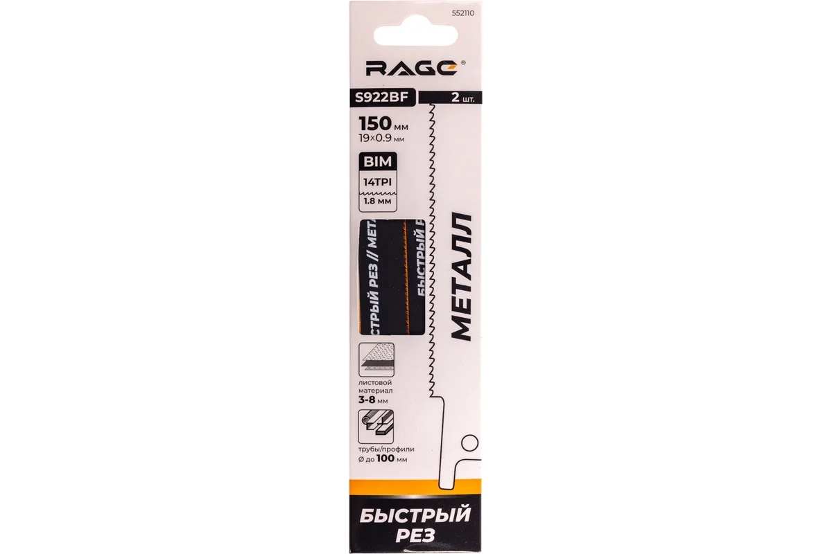 Полотно д/сабельной пилы МЕТАЛЛ 2шт 150/1,8мм прямой рез S922BF арт.552110 RAGE VIRA *10/100