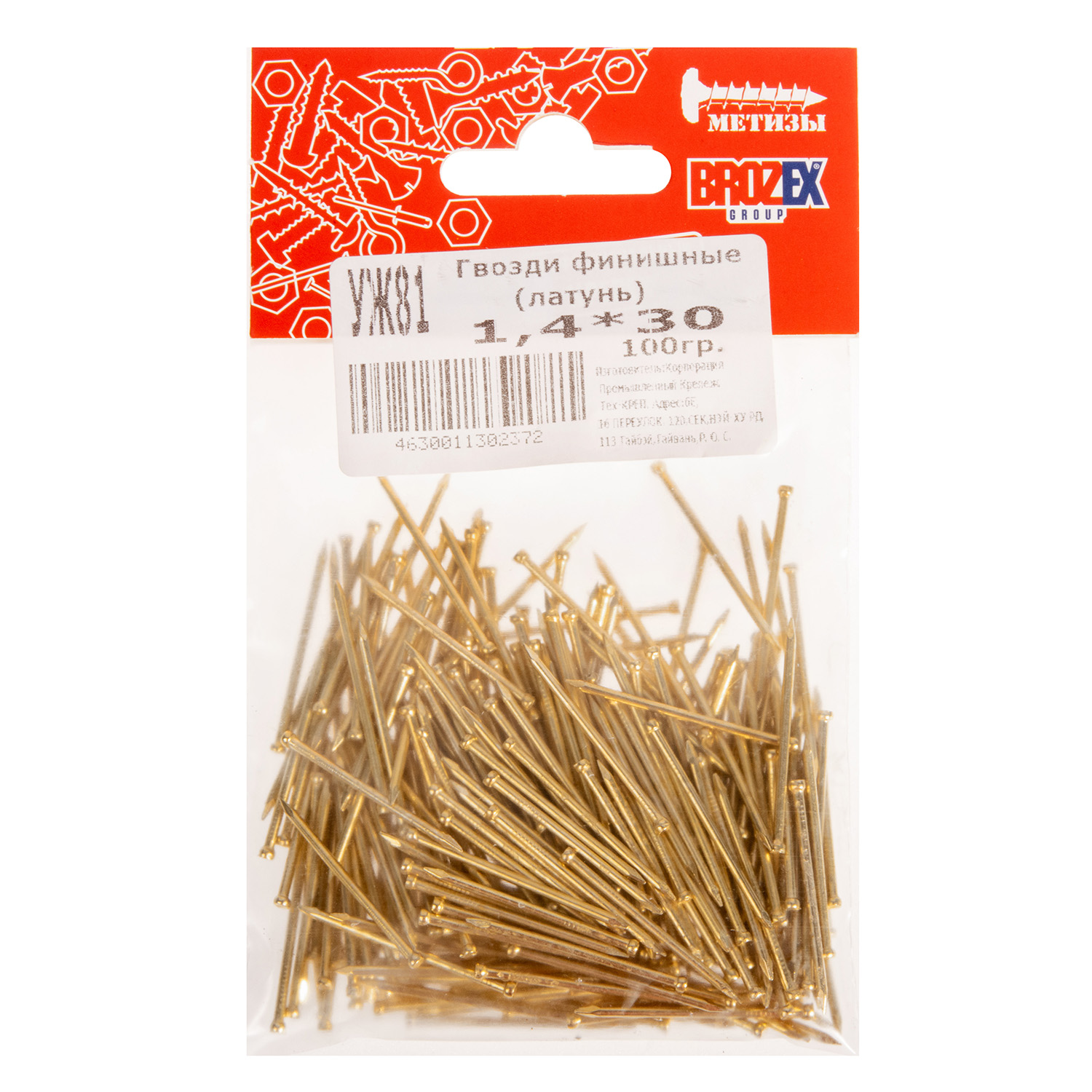 Гвозди финишные 1.4х30 мм BROZEX, 0.1 кг, латунь