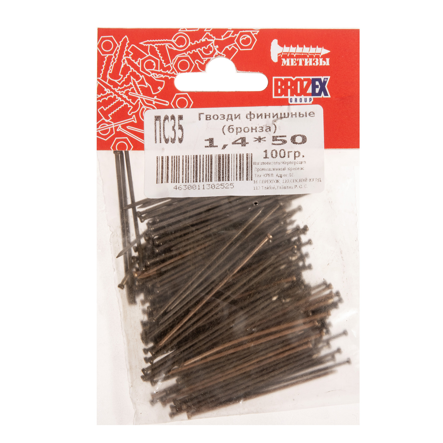 Гвозди финишные 1.4х50 мм BROZEX, 0.1 кг, бронза