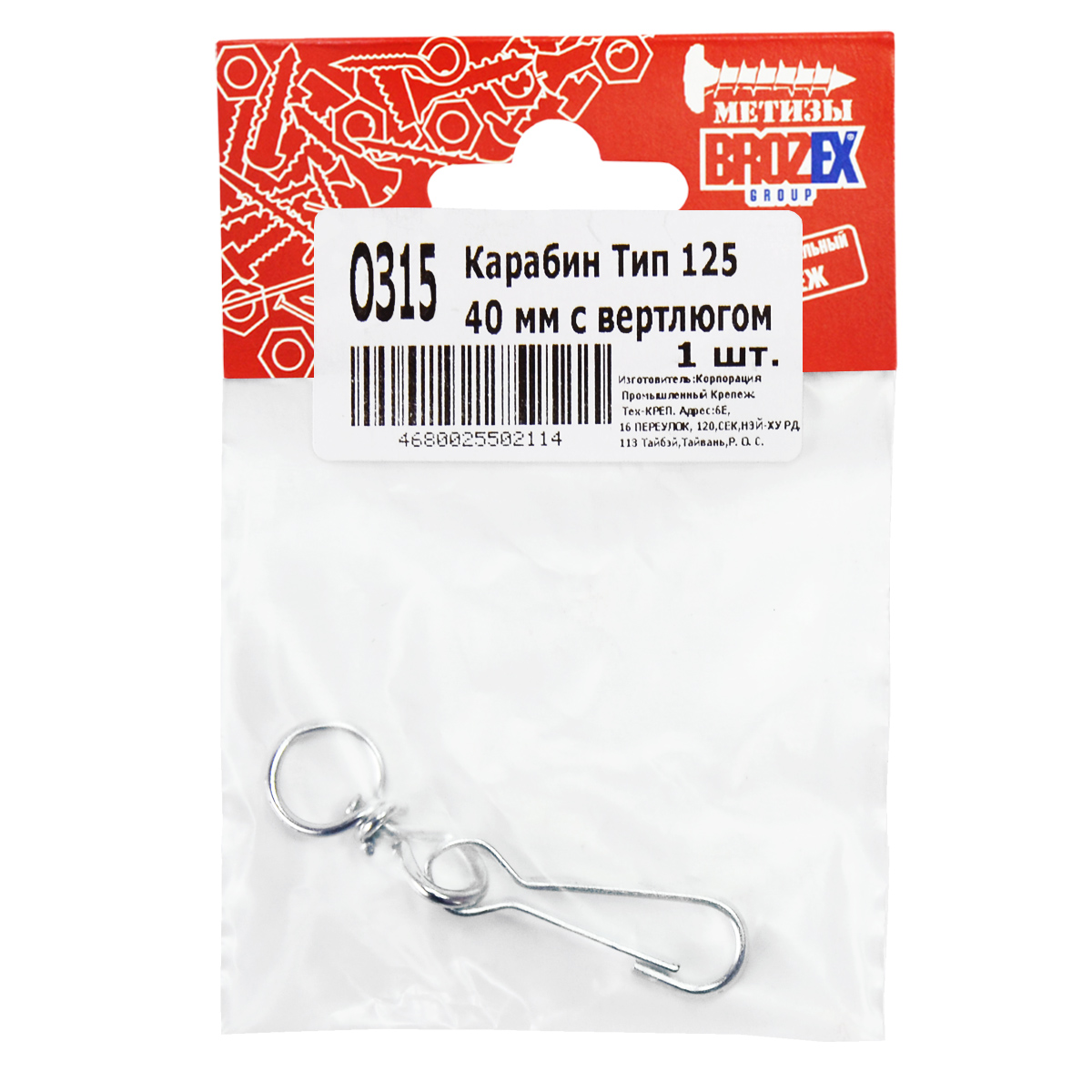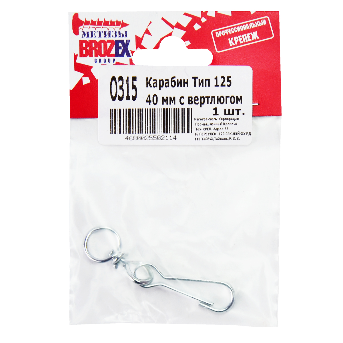 Карабин тип 125 40мм с вертлюгом BROZEX (1шт) *10