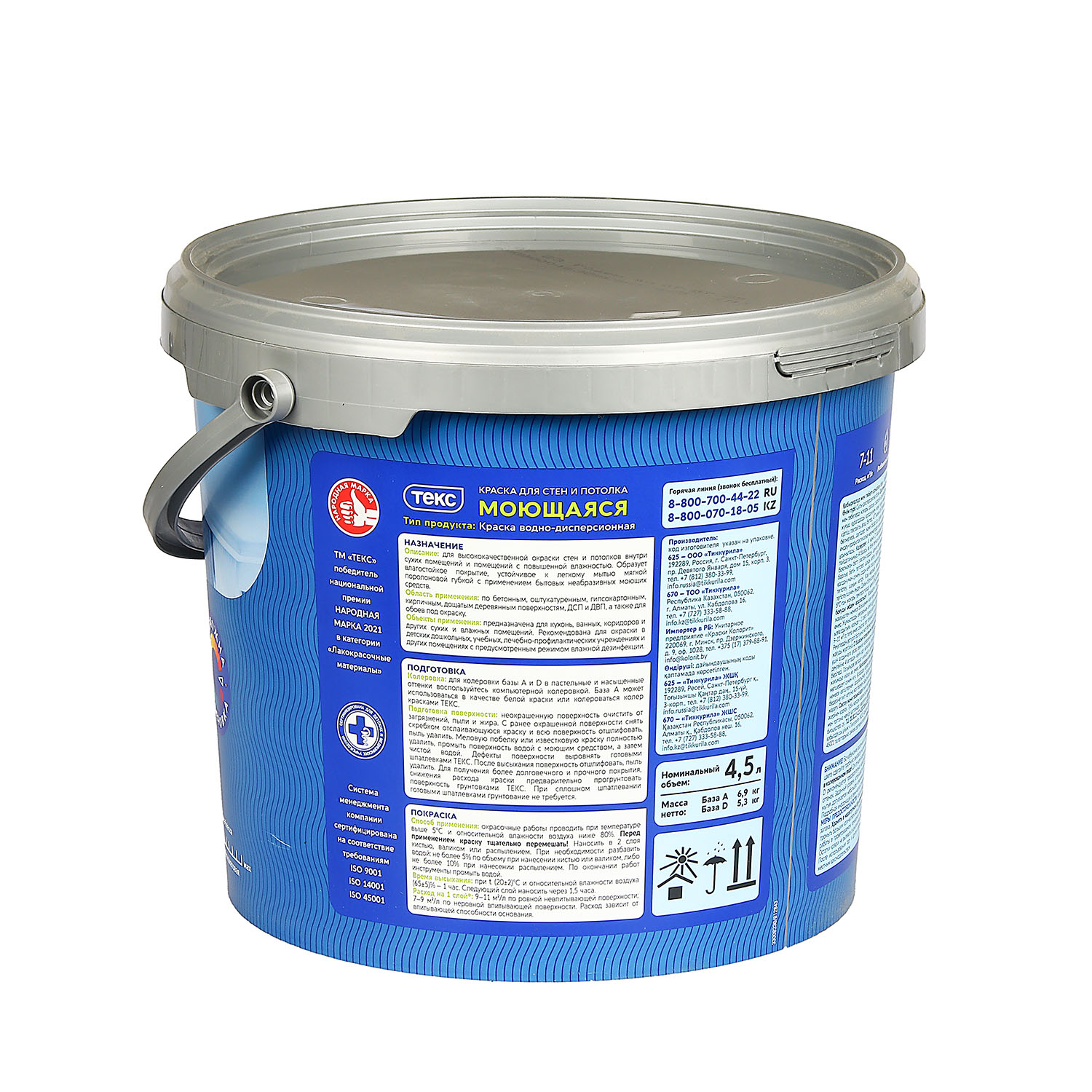 Краска акриловая для стен и потолков 4,5 л ТЕКС  "Профи" моющаяся База A *1/44