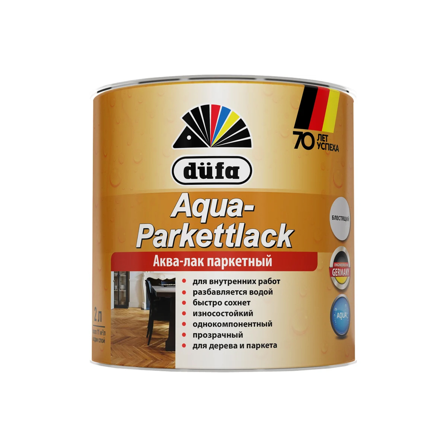 Лак акрилово-полиуретановый паркетный шелковисто-матовый 2 л. Dufa AQUA-PARKETTLACK *1/2