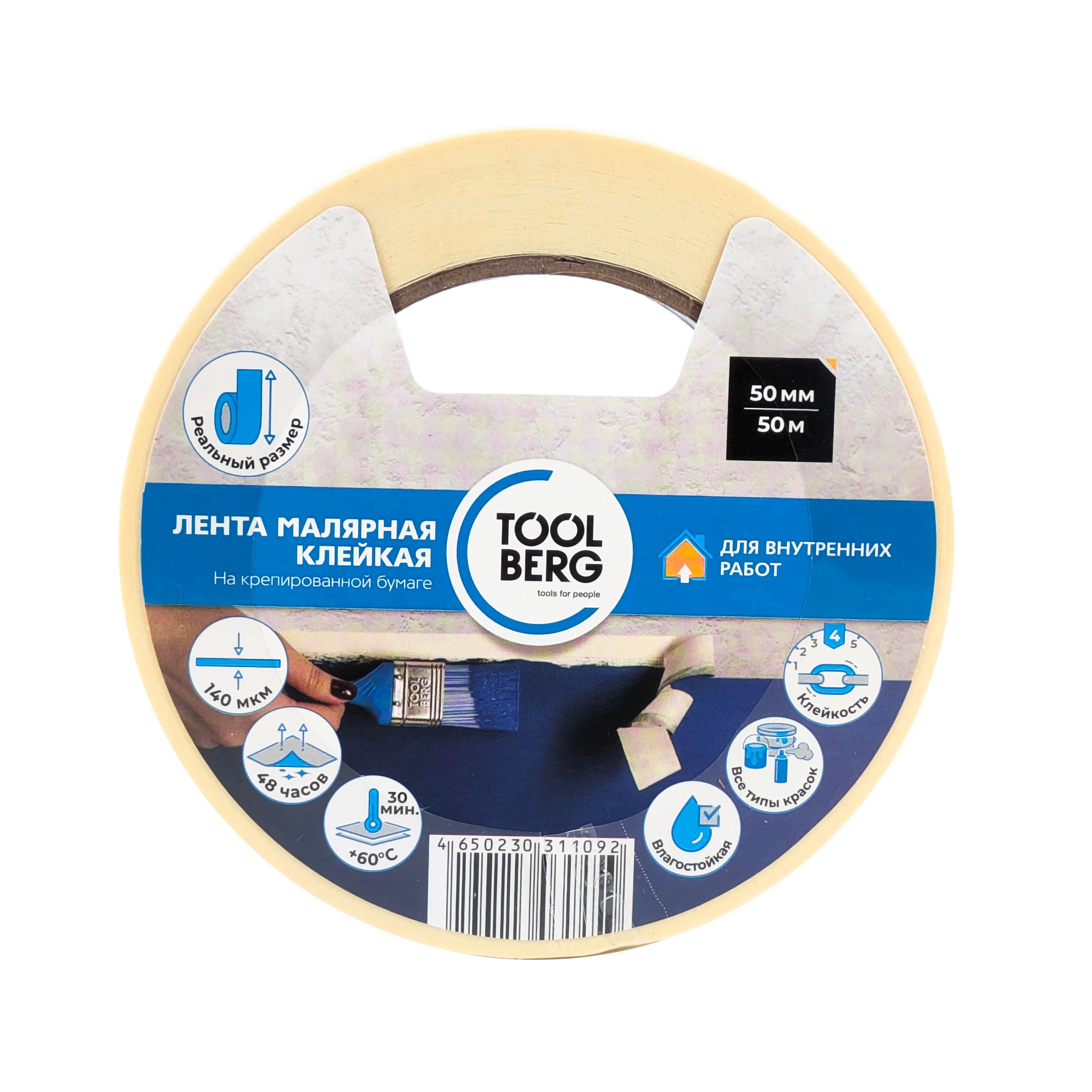 Лента клейкая малярная 50мм х 50м 2010170 "TOOLBERG" *1/36