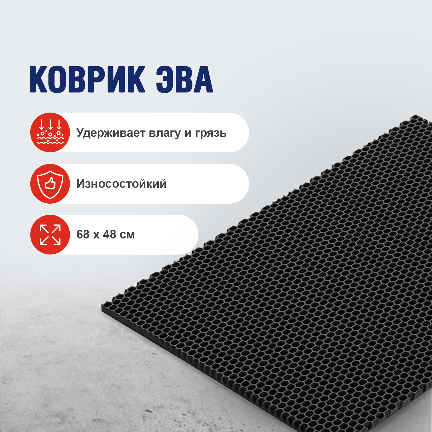 Коврик грязезащитный ЭВА Homester, 68х48 см, ромбы, черный