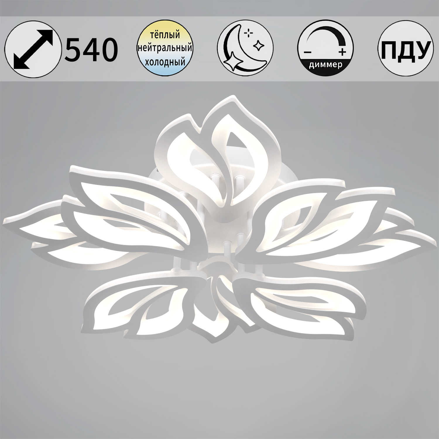 Светильник потолочный светодиодный 00150-0.3-4+4 WH LED 3000-6500К 144W ПДУ ПДУ+диммер S=26м2  *1/10