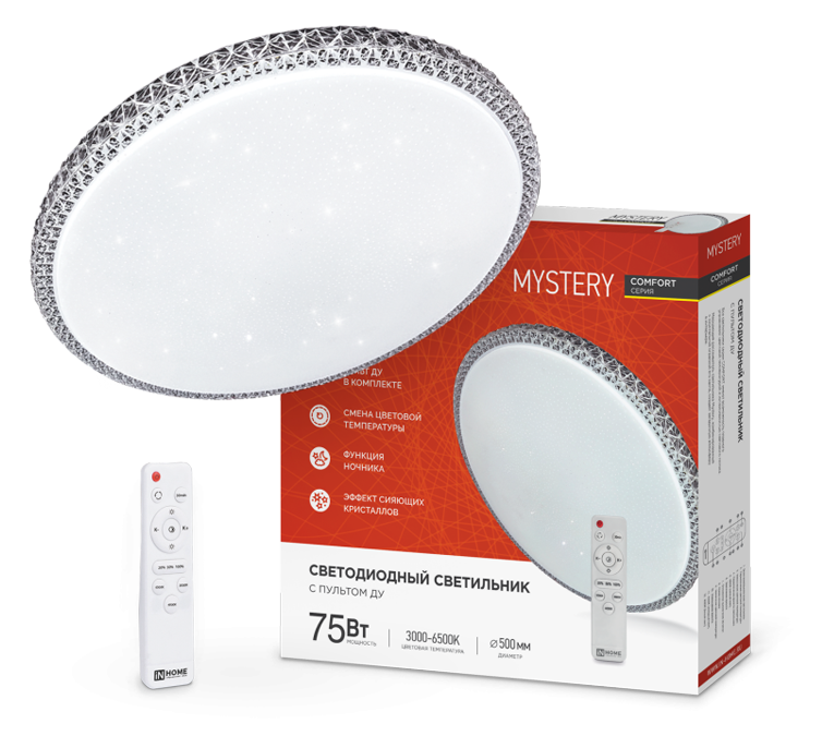 Светильник светодиодный акриловый 500мм 75Вт 3000-6500К COMFORT MYSTERY S=40м2 с пультом *1/3