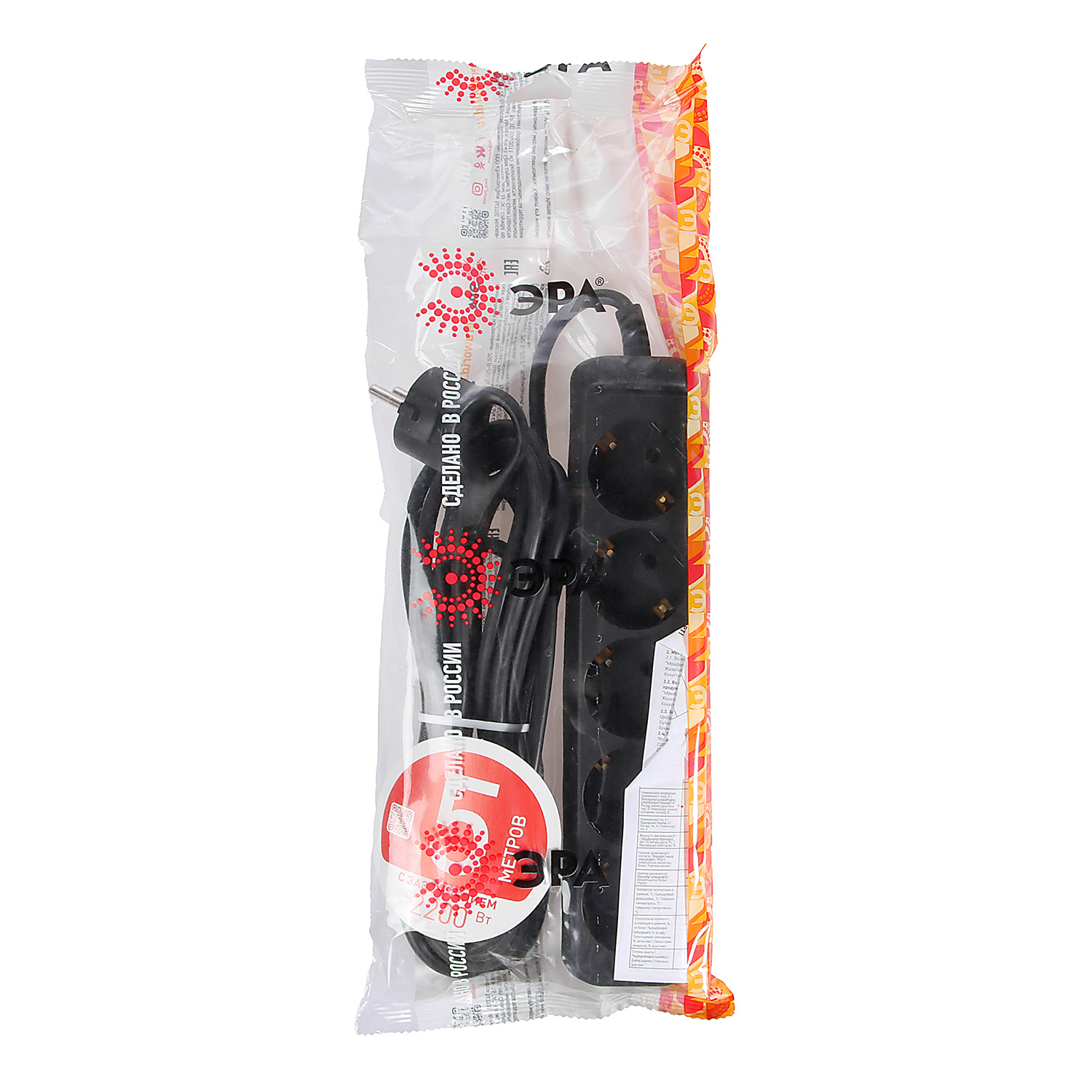 Удлинитель 5 розеток 5м с/з ПВС 3*0,75мм2 10А мощ. нагр 2200Вт ЧЕРНЫЙ ЭРА UX-5e-5m-B *1/5/10