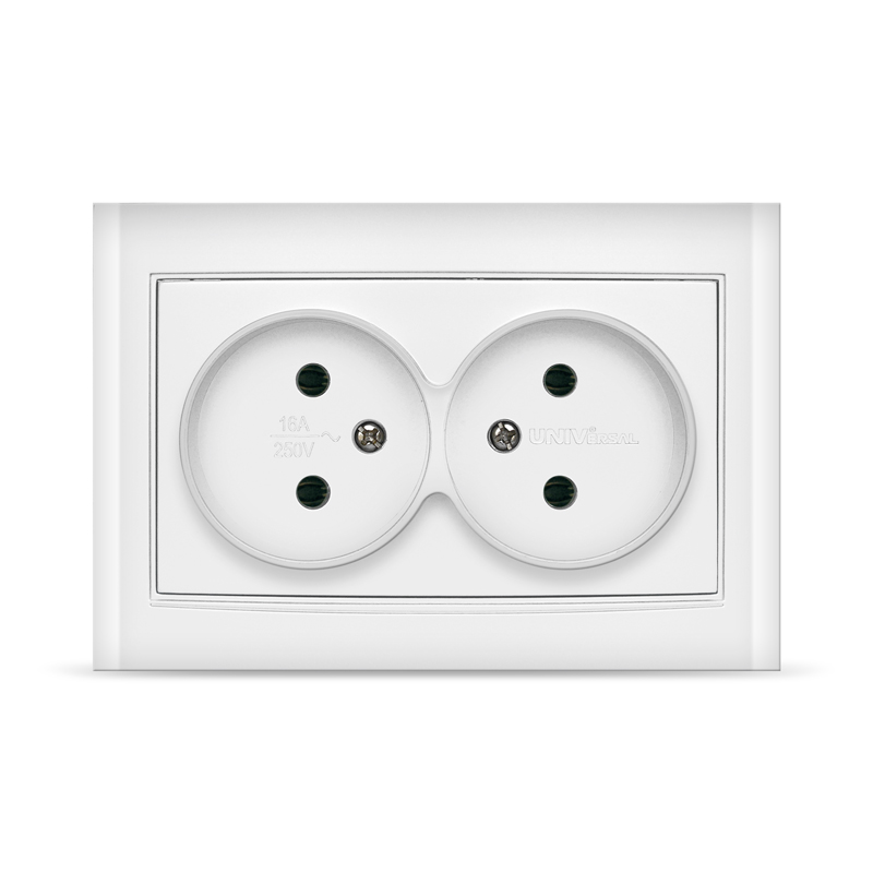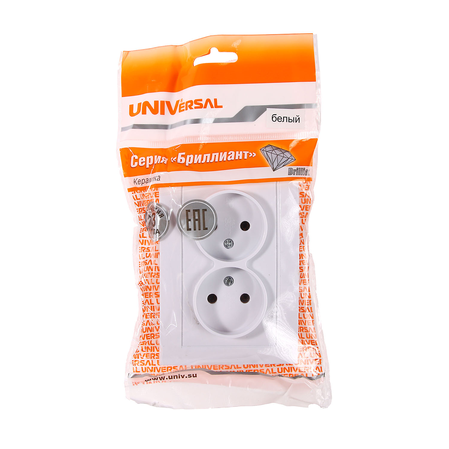 Розетка Бриллиант СП 2-мест. белая бз 16А IP20 UNIVersal 7947519