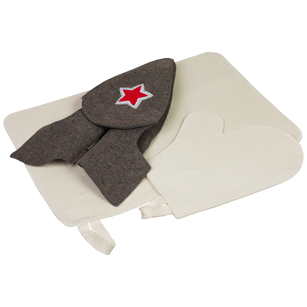 Набор из 3-х предметов (шапка Будёновка, рукавица, коврик) "Банные штучки", войлок 100% / 5