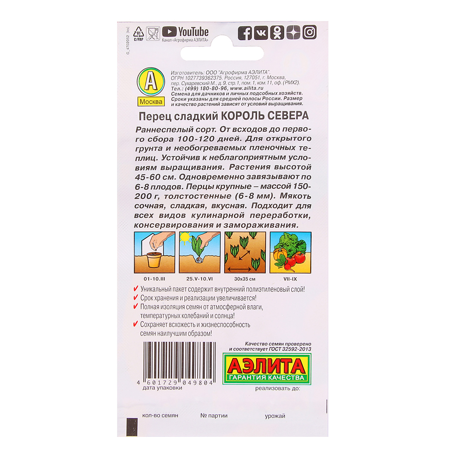 Семена Перец сладкий Король севера 0,2гр Аэлита цв *10/500