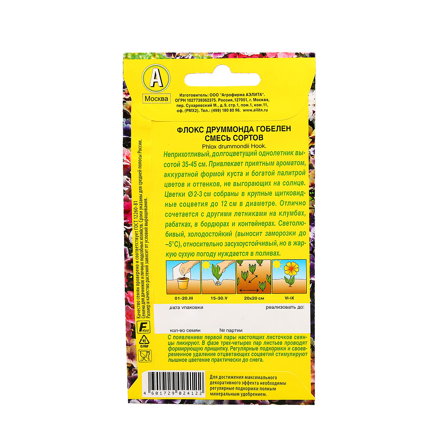Семена Флокс Гобелен смесь 0,1гр Аэлита цв *10/200