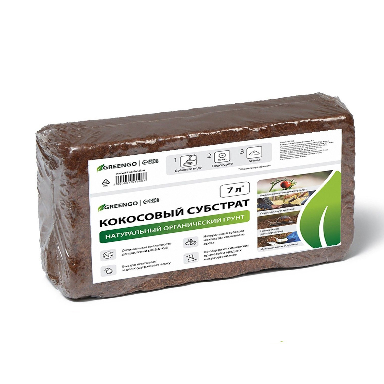Субстрат кокосовый в брикете, 7 л, универсальный "Greengo"   5151596