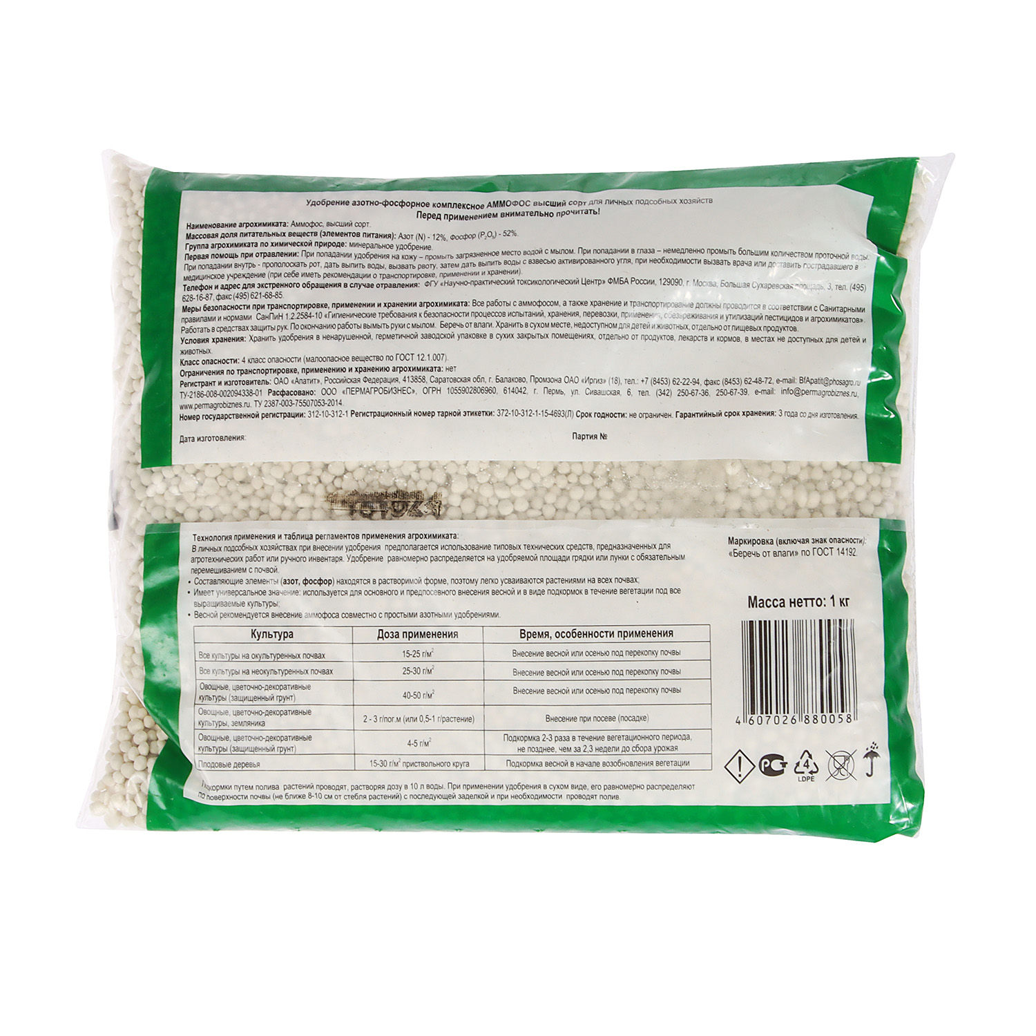 Удобрение аммофос Пермагробизнес, 1 кг