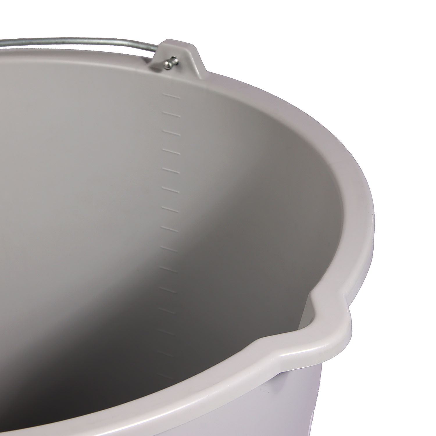 Для удобства использования предусмотрены мерная шкала, носик для слива остатков растворов, загнутая наружу верхняя кромка, с помощью которой ведро можно перемещать, не используя ручку.