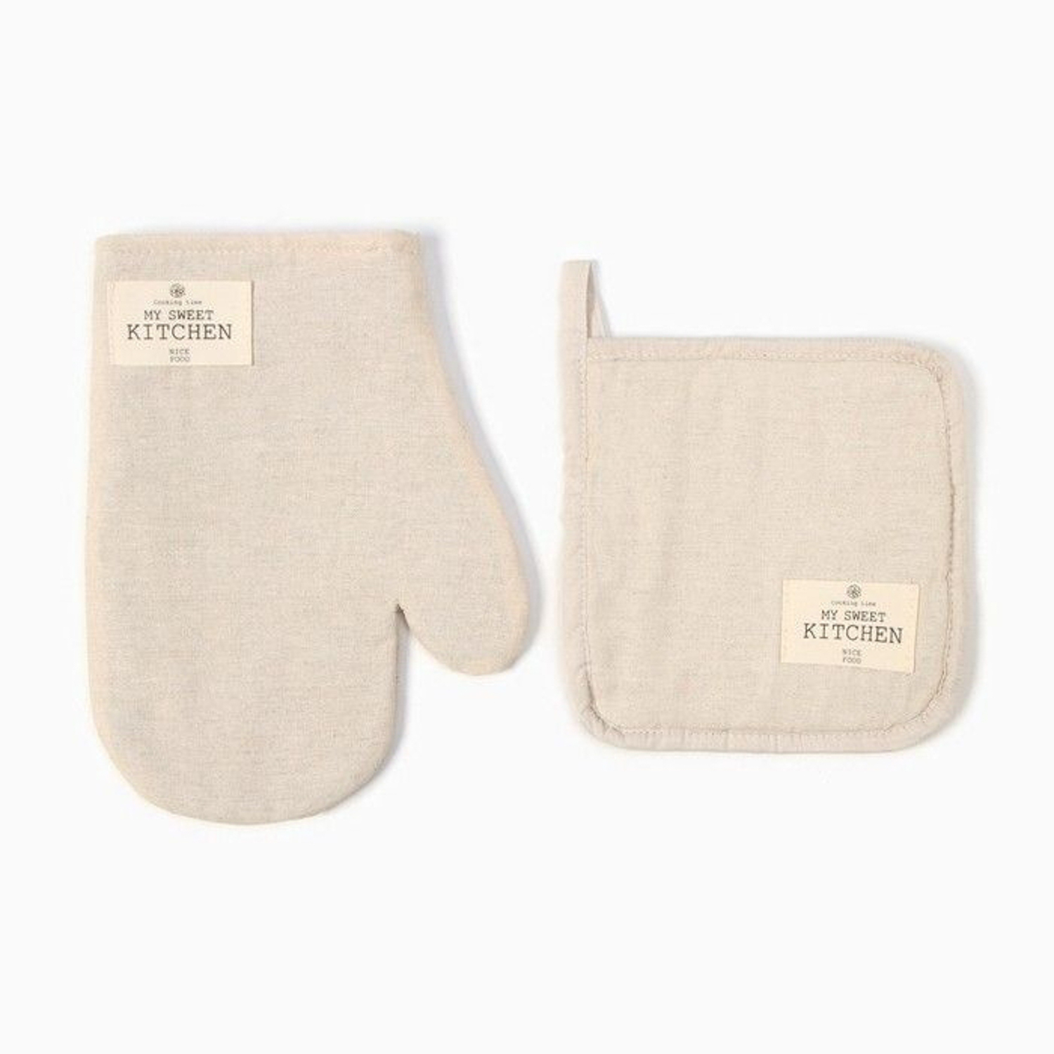 Набор прихваток ECO молочный варежка-прихватка 20х28см, прихватка 19х19см 70%хлопок 30%лен Этель *1