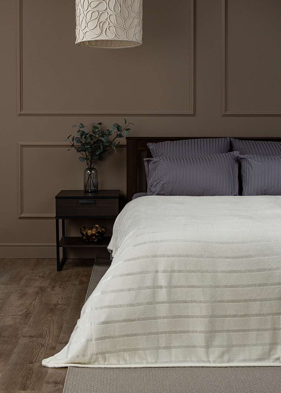 Плед 150*200см фланель однотонный страйп бело-молочный TF FNS ML1 1520 11-0604 Absolute *1