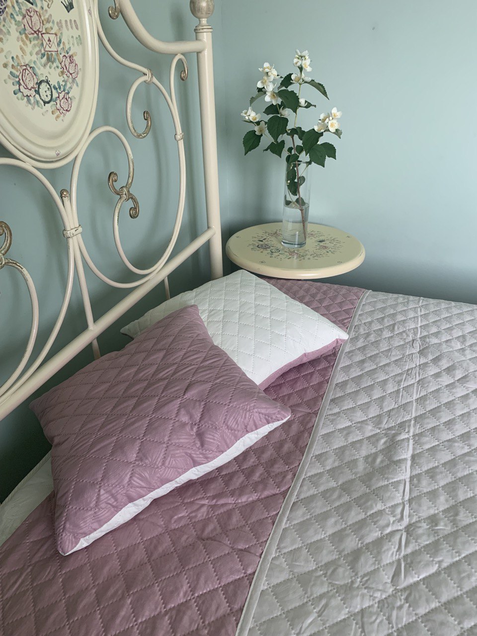 Покрывало 200х220см стеганое двухстороннее пыльная роза/кремовый Орхидея *1 *