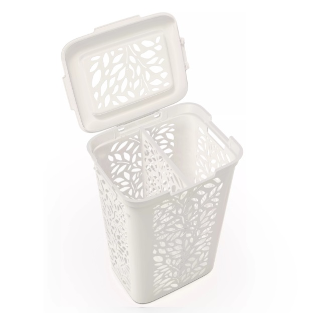Корзина для белья пластм. 60л "Leaves" с разделителем 440x340x635мм Молочный 48917 ("Пли-быт") *1/4