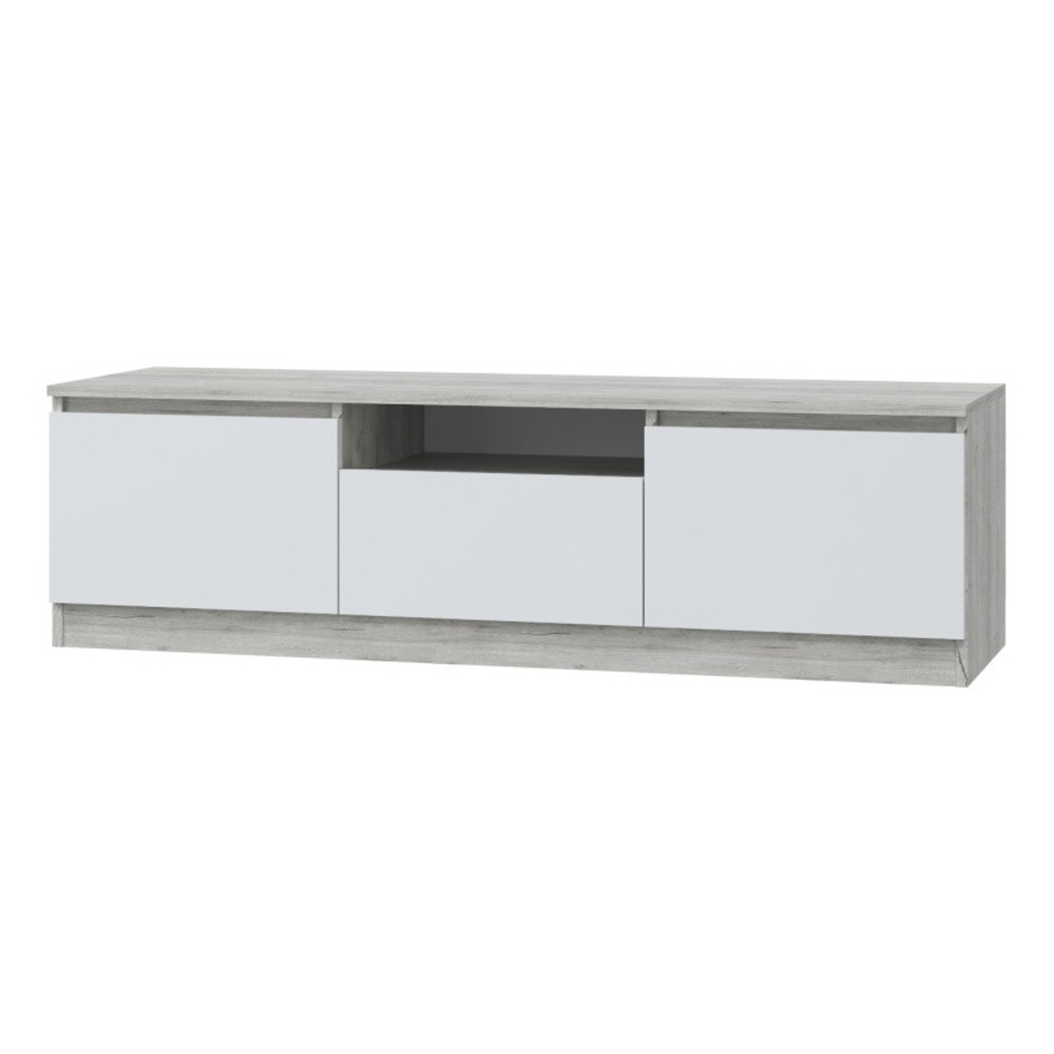 Тумба под ТВ 1400х408х450 мм 33 КОМОДА Лори, с ящиком и двумя  дверцами, дуб серый / белый