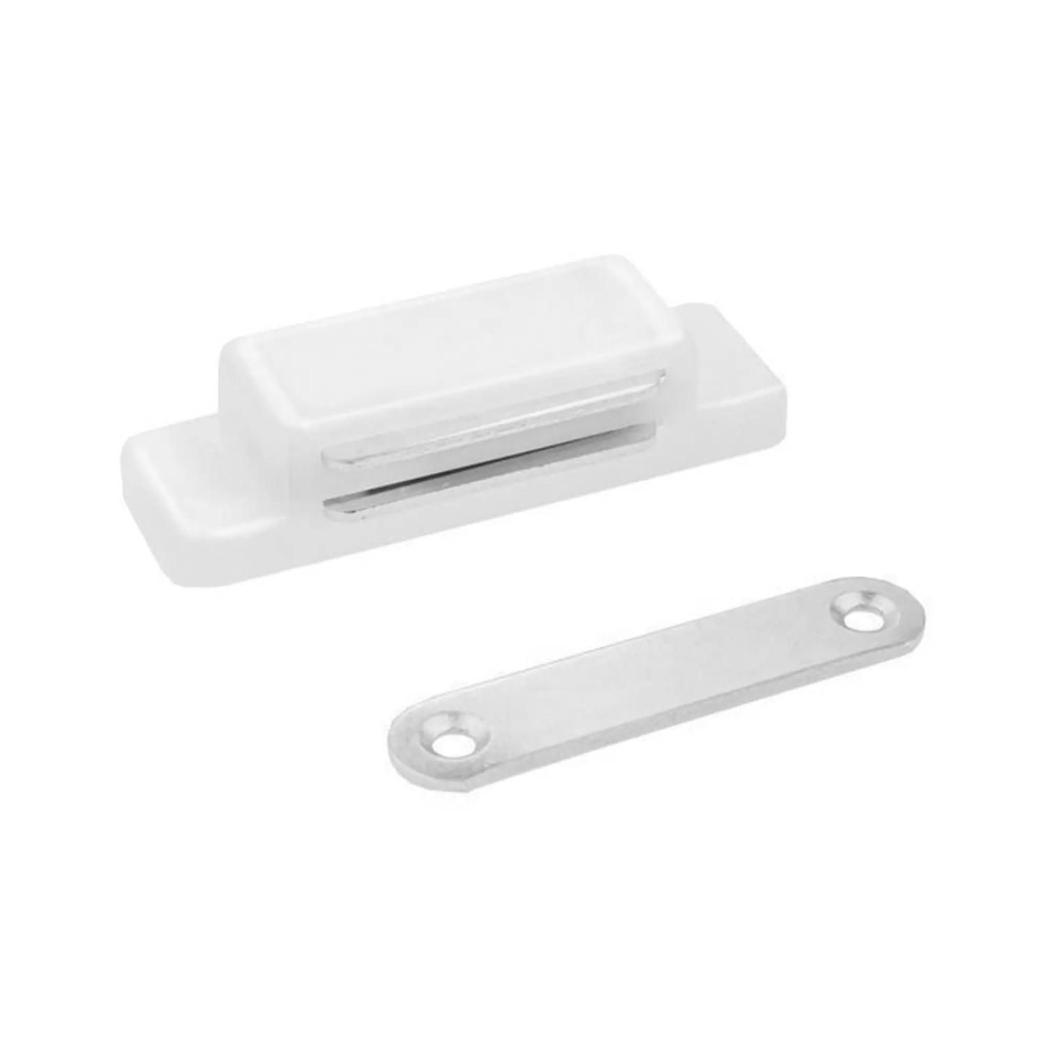 Магнитная защелка - это вид мебельной фурнитуры, который используется для фиксирования мебельных створок в закрытом положении. Работает за счет притяжения магнитных вставок в основании защелки и ответной части.Корпус защелки выполнен из пластика, покрытие - краска.