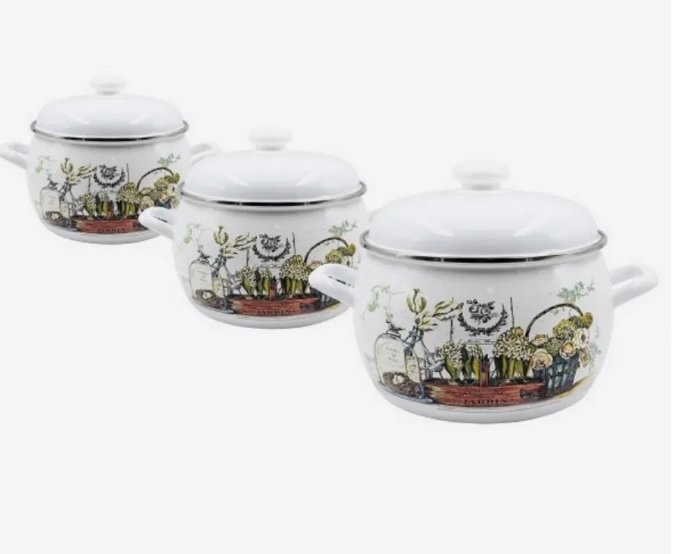 яяяНабор кастрюль эмалированных: 2,0л+3,5л+5,0л рис. "Винтаж" С-207АП2/4 "Лысьвенские ЭМАЛИ" *1