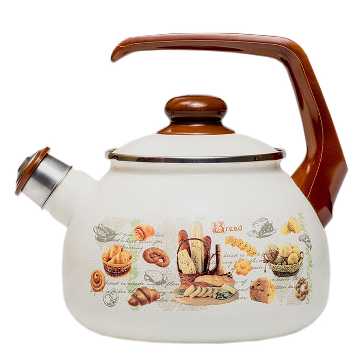 яяяЧайник стальн. эмалир. со свистком 2,5л "Хлеб" 2426 ("МЕТРОТ" Сербия) *1/6