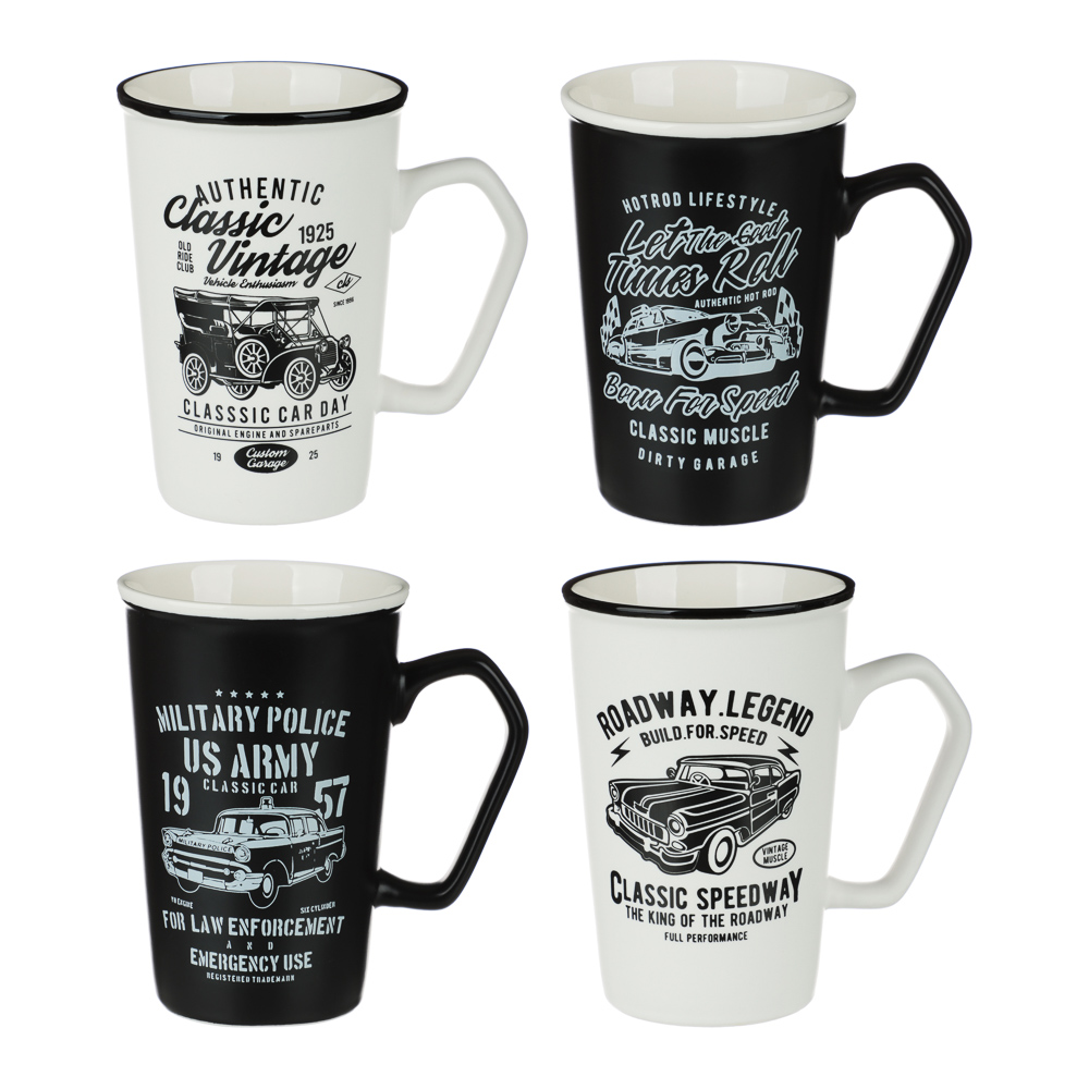яяяКружка фарфор. 410мл "Ретро" в упак.4 дизайна 806-069 *48