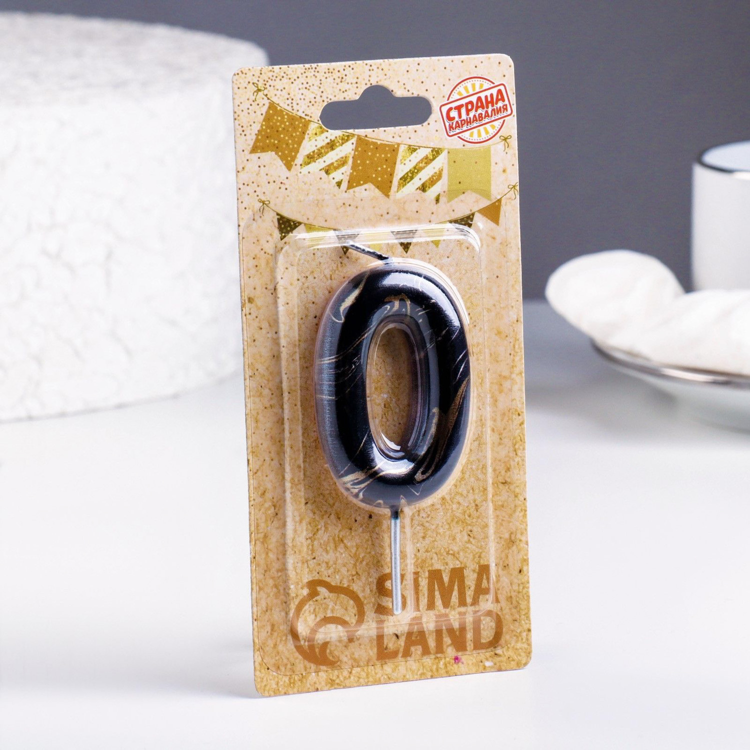 Свеча в торт "Черный мрамор", цифра "0", 8 см 6990854