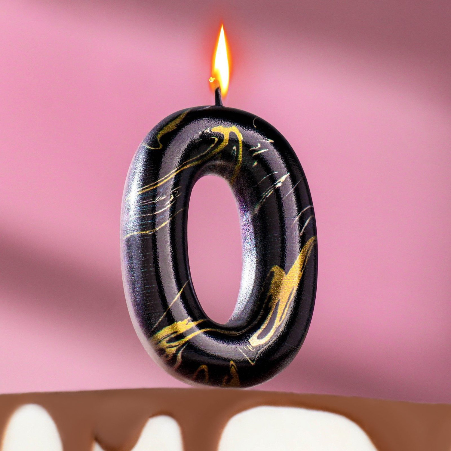Свеча в торт "Черный мрамор", цифра "0", 8 см 6990854