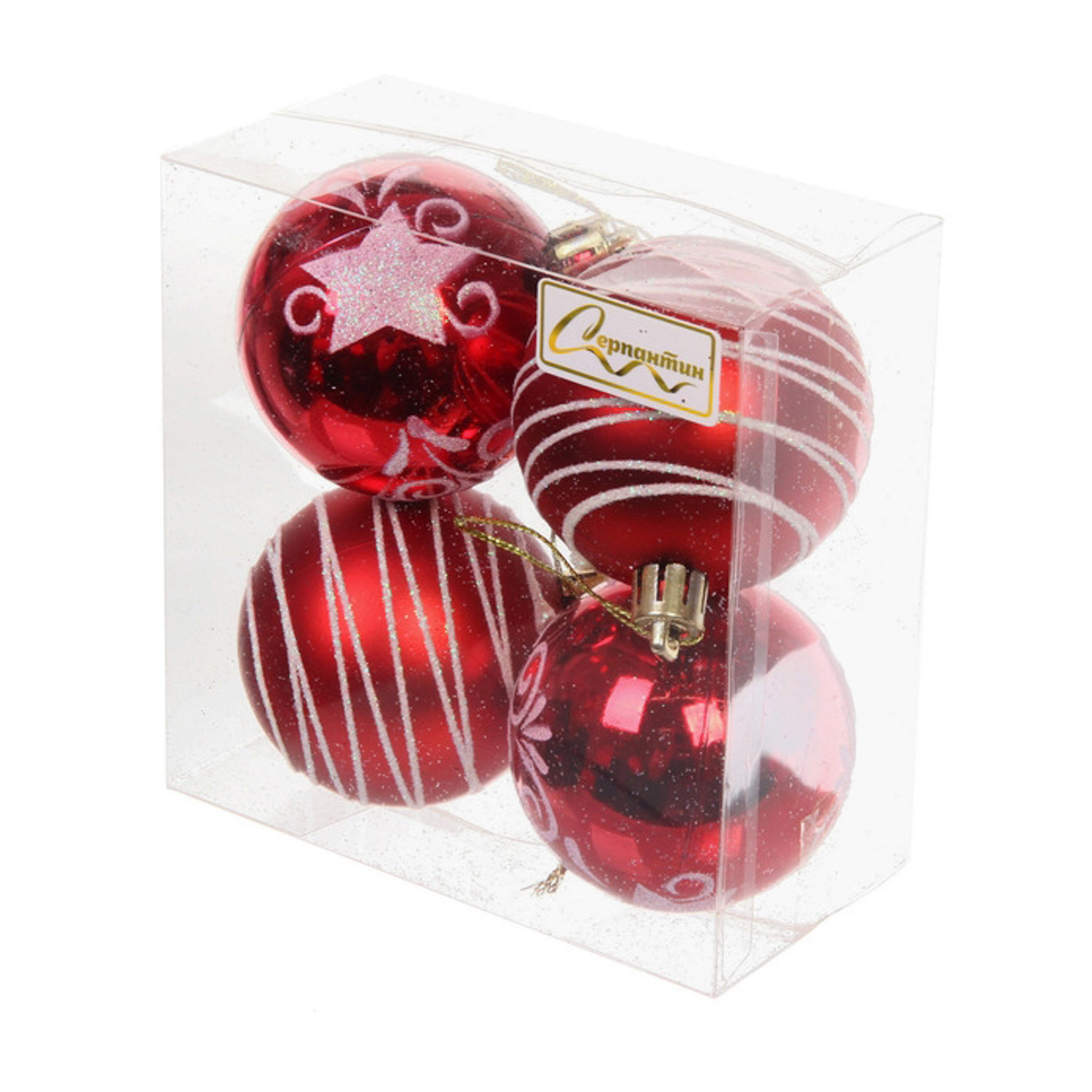 Новогодние шары 6 см (набор 4 шт) "Снежная дымка", Красный