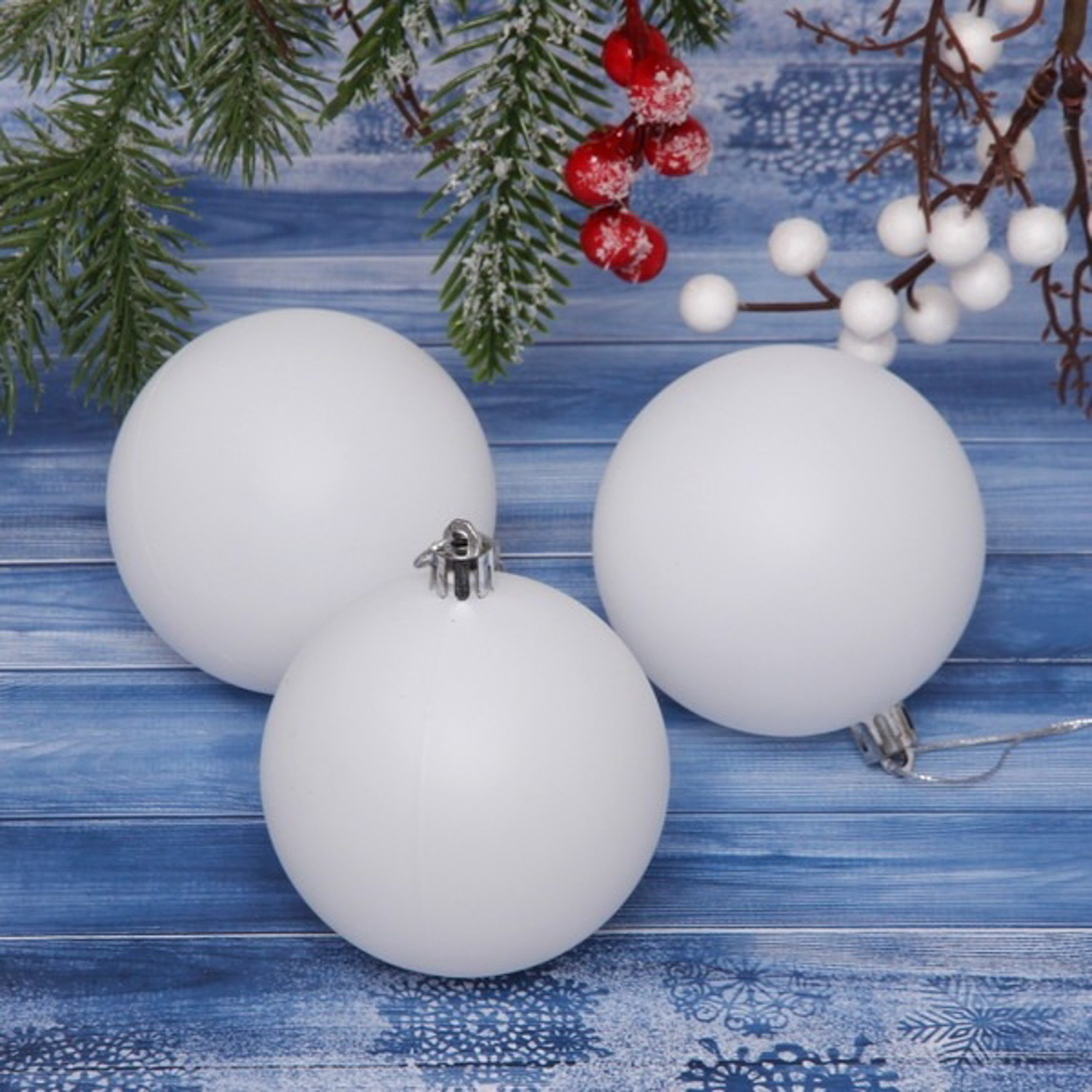 Новогодние шары 8 см (набор 3 шт) "Матовый", белый