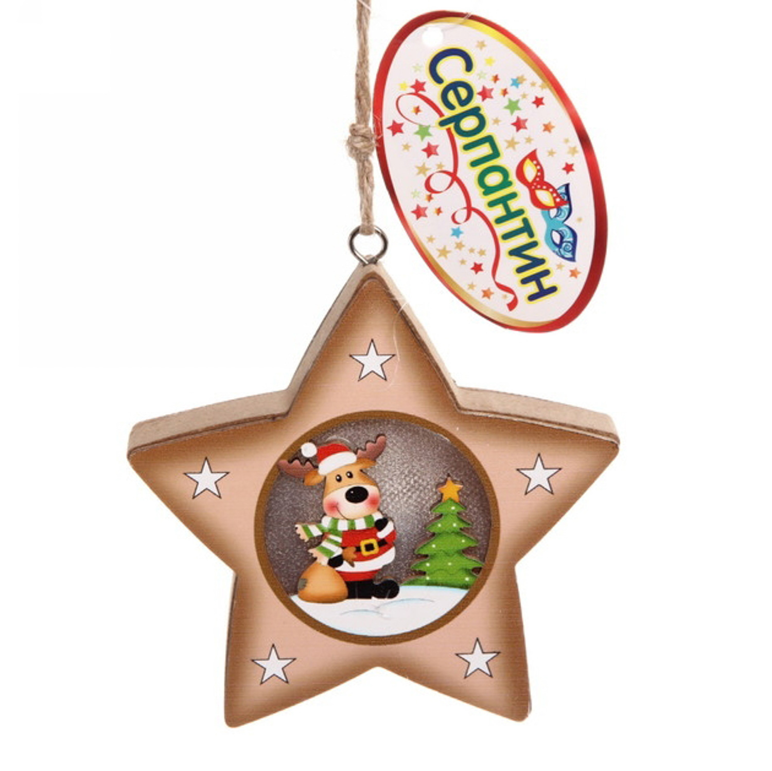 Украшение новогоднее подвесное с подсветкой "Оленёнок в звёздочке" 9,5 см