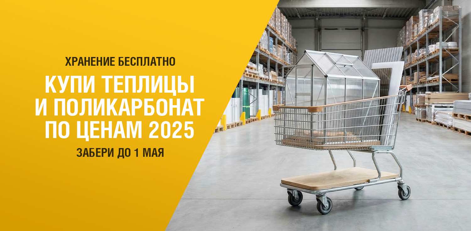 Покупайте поликарбонат и теплицы по ценам 2025 года — а забирайте, когда начнётся активный сезон работ. Мы бесплатно сохраним вашу покупку до 1 мая — чтобы вы могли подготовиться без спешки, лишних хлопот и переплат. Отличный способ зафиксировать цену сегодня и спокойно планировать стройку или ремонт на будущее.