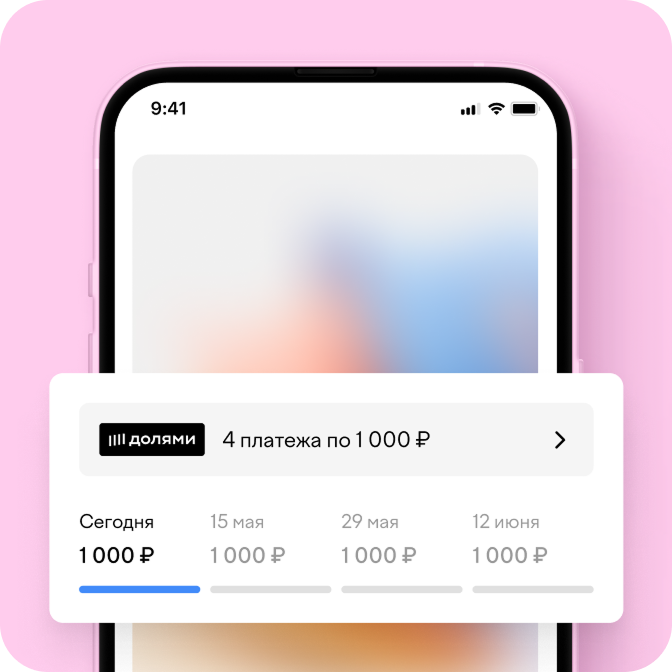Мы подключили сервис оплаты «Долями»! Это значит, что теперь сумму покупок в нашем магазине можно разделить на четыре части. Первую долю вы платите сразу, остальные три будут списываться раз в две недели. Вы получите товар сразу, как при обычной покупке картой.