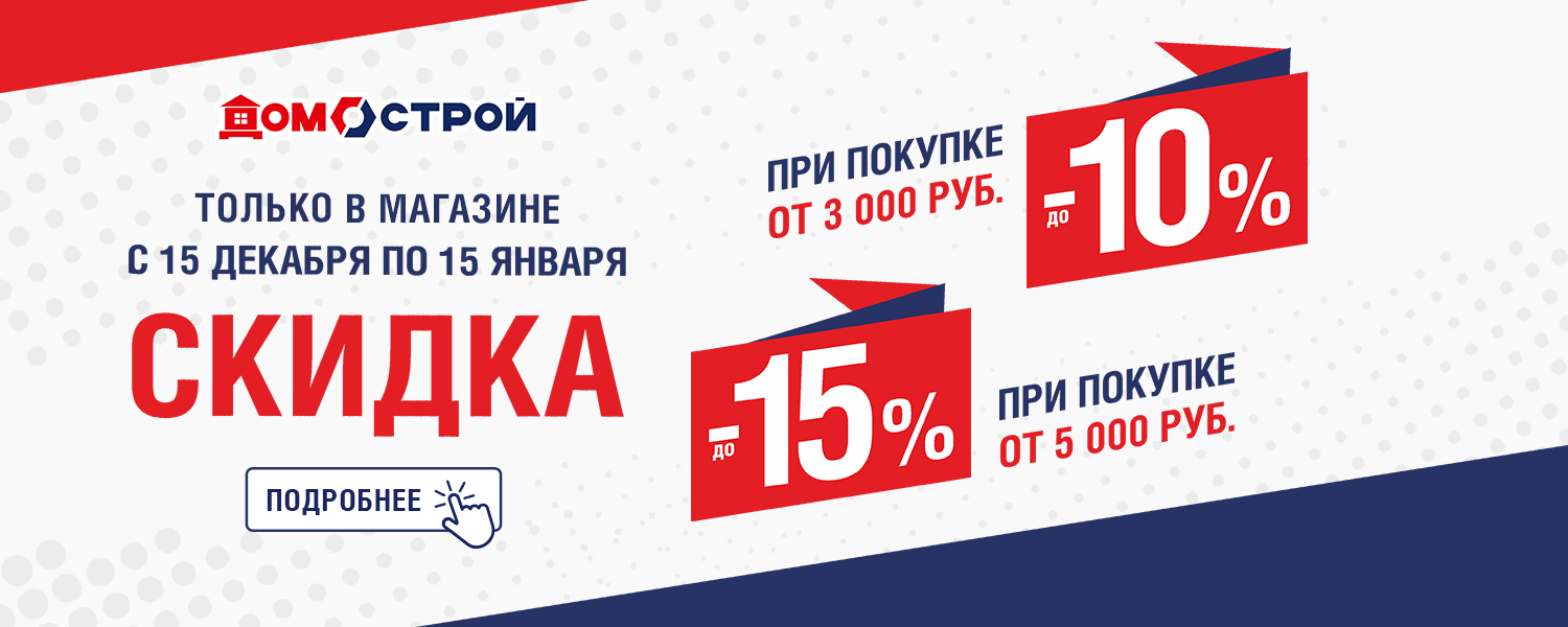 С 15 декабря по 15 января только в розничном магазине ДомоСтрой действует акция выгодных покупок для дома и ремонта: