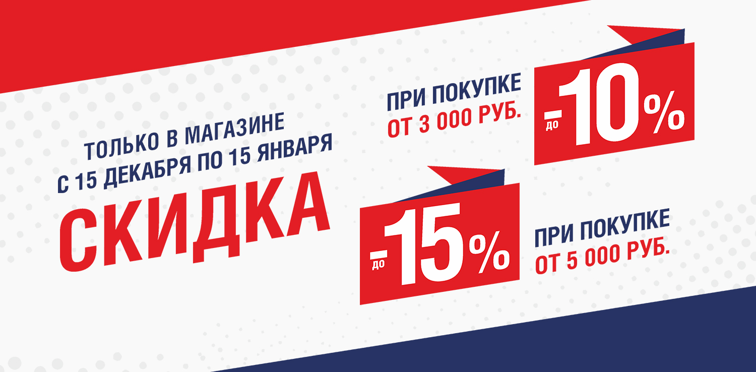 • при покупке на сумму от 5 000 рублей — скидка до -15%.
